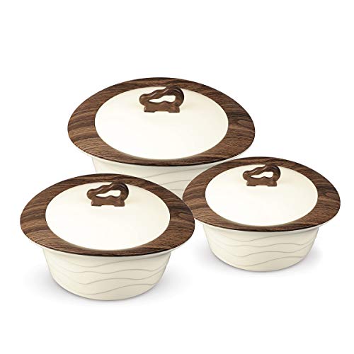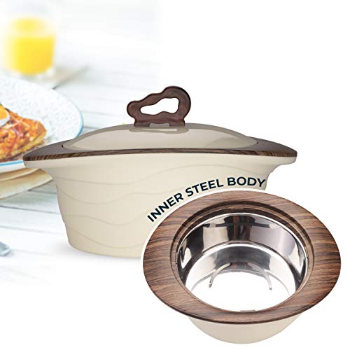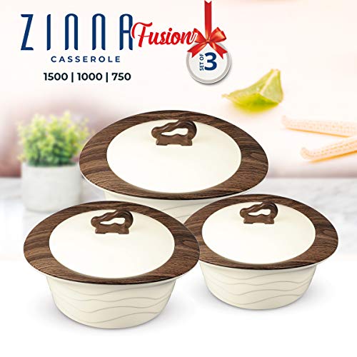 Trueware Zinna Fusion casserole meal set is made out of best materials with exquisite chromed top break safe complete product. It makes lock cover lid. The internal body is made of high grade stainless steel. The plastic external body is shaped out of virgin food grade plastic (BPA free & FDA Free). With an exceptional chrome finish it gives a modern look which is one of the standout basic in your kitchen assortments. We can purchase this item for high utility and gifting. Washing Instructions: Use mild detergent for washing. Dry thoroughly after washing. Clean the outer body with sponge instead of brush or scrub. General care: Do not attempt to separate the inner stainless steel container from its main body. Do not place the casserole over or in close proximity of fire. Tips for Optimum Use: Prior to storing hot food stuff pre-condition the casserole by pouring a little hot water rinse and empty contents. Similarly for cold articles rinse with cold water. Transfer the food into the casserole as soon as it is prepared. Store to full capacity. Do not use in Microwave. Special P.U. Insulates keeps contents warm for many hours. Mirror Finish Stainless Steel Bowl. Aesthetically Designed Outer Body & Lid. Disclaimer: Do not use any kind of hard substance or scrubber to clean the inner or outer body of Casserole.