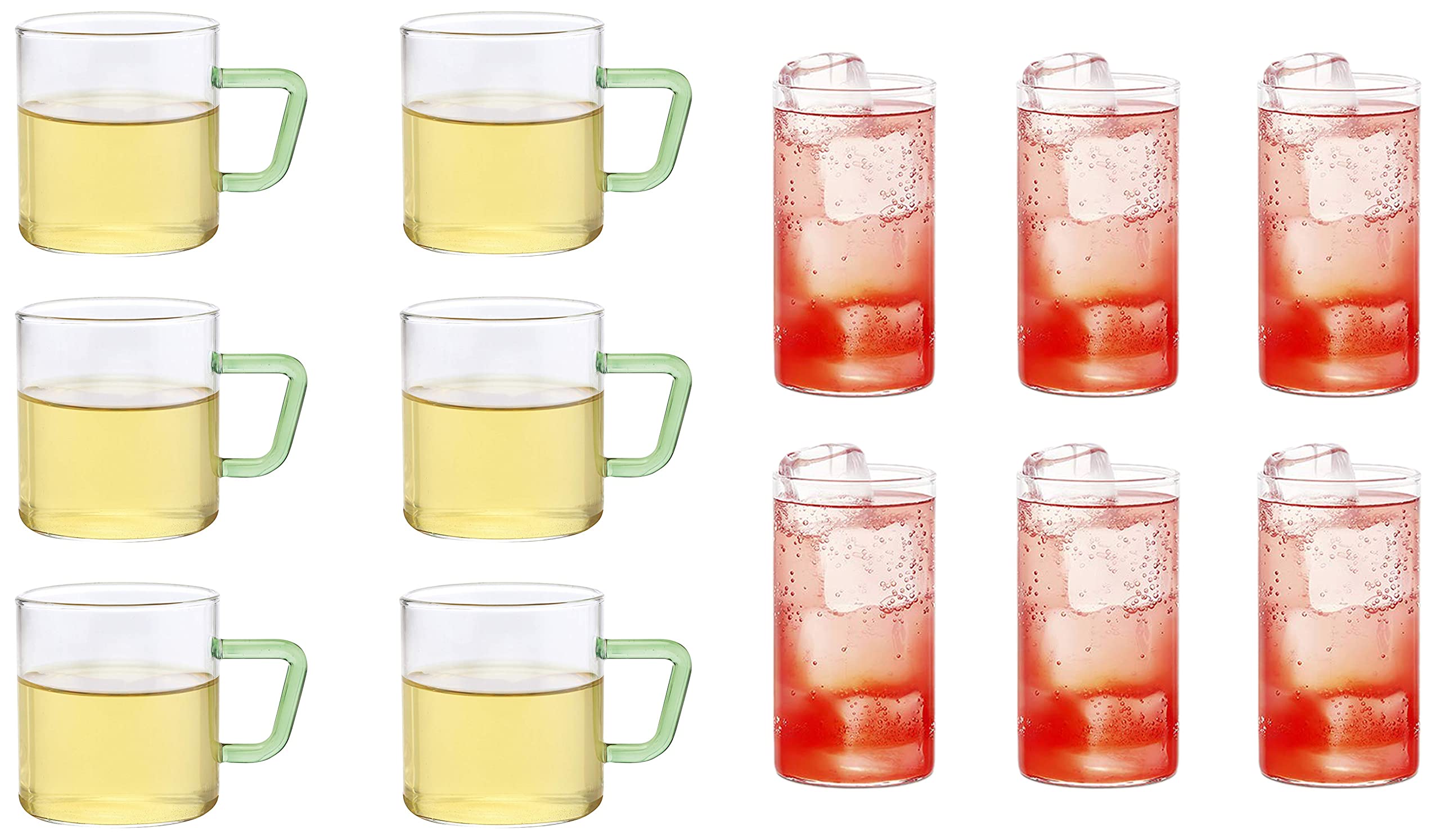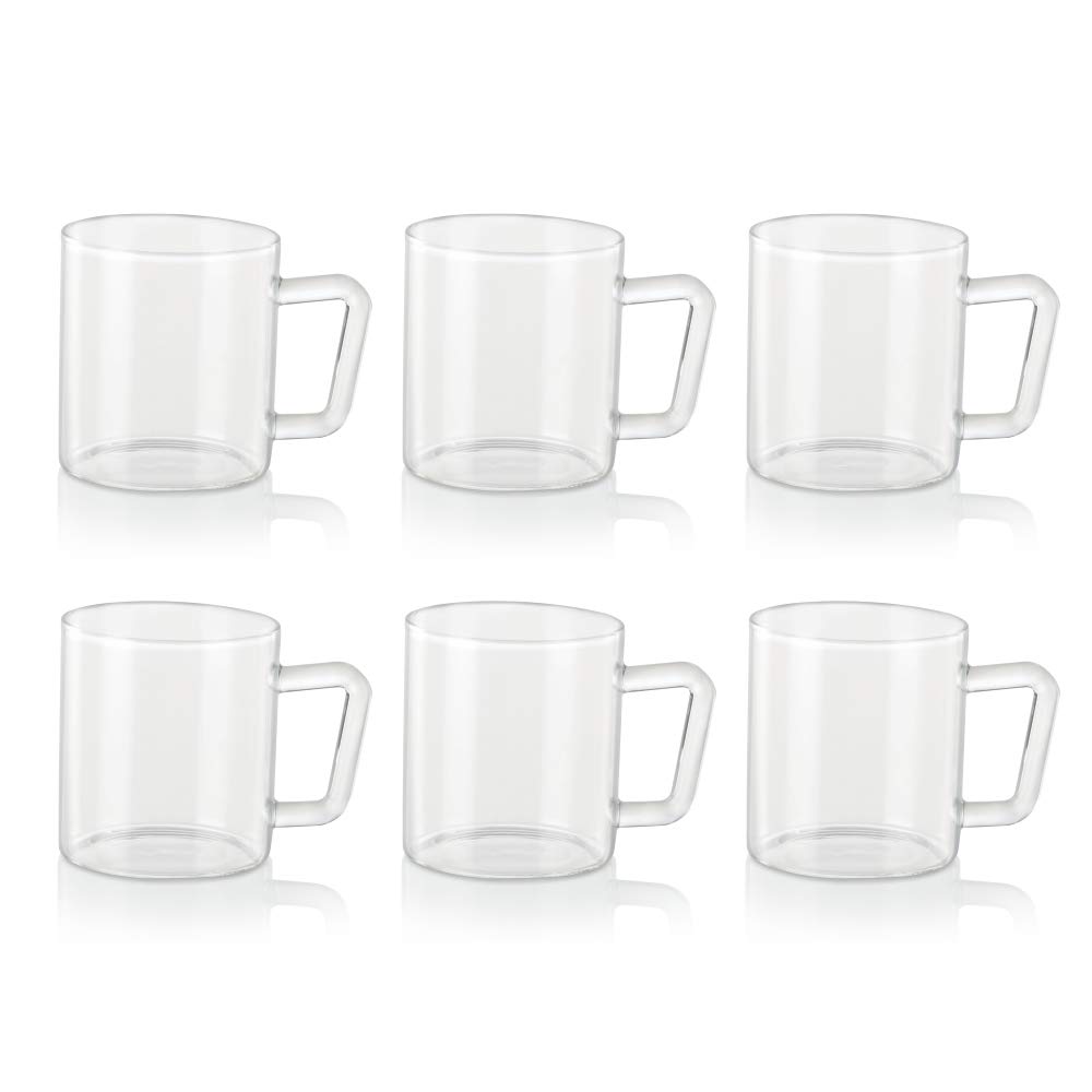 Borosil - Bv430100003 Vision Glass Set 350 Ml Set Of 6 Transparent & Borosil Vision Tea N Coffee Glass Mug Set Of 6 - Microwave Safe Green Handle 190 Ml