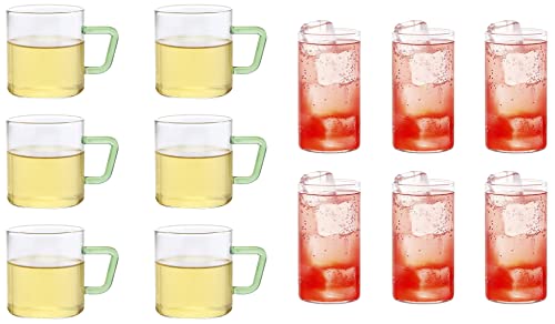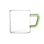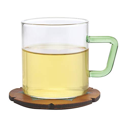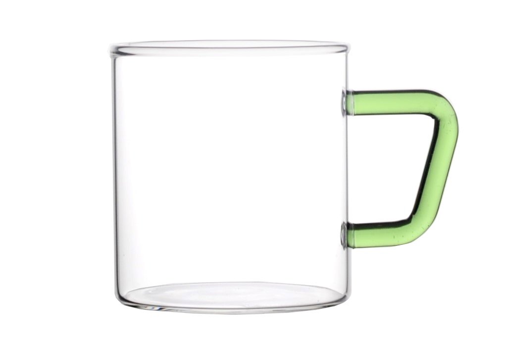 Borosil - Bv430100003 Vision Glass Set, 350 Ml, Set of 6, Transparent Vision Tea N Coffee Glass Mug Set of 6 - Microwave Safe, Green Handle, 190 Ml