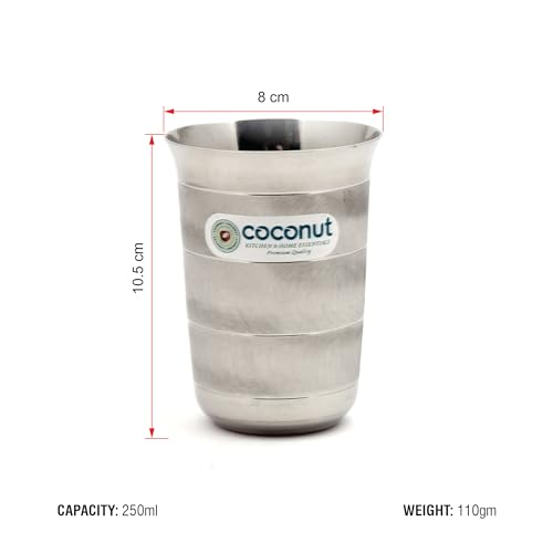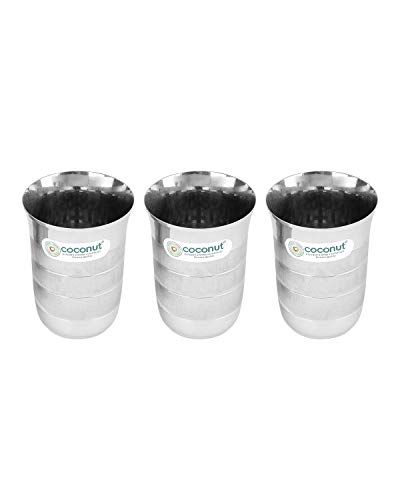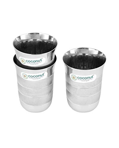 Coconut is range of innovative and products for home and kitchen. This set has been beautifully designed to add grace to your dining experience. This set is perfect for serving lemonade water juice etc. It is made from stainless steel and is absolutely durable. These Glasses can be used at home as well as at Hotels and restaurants. These can be easily cleaned and maintained.Coconut Stainless Steel -A3 Water Glass - Set of 3 - Capacity -320ML