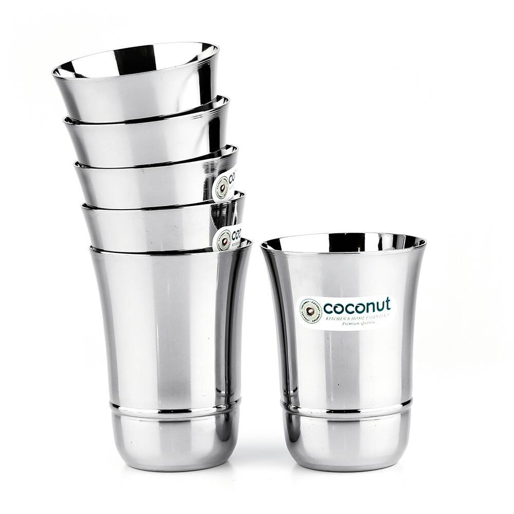 Coconut Stainless Steel – Mirror Finish Dining Glass Set | Multipurpose Drinkware for Home & Office | Ideal for Serving Water | Juice | Cold Drinks | Lemonade | Dishwasher Safe | Set of 6 | 300 ml Each