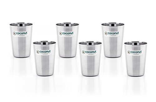 coconut Stainless Steel - Glass | for Home, Office & Restaurant Drinkware Ideal for Serving Lassi, Chaas, Water, Juice & Lemonade Pack of 6 (Capacity-250ml Each)
