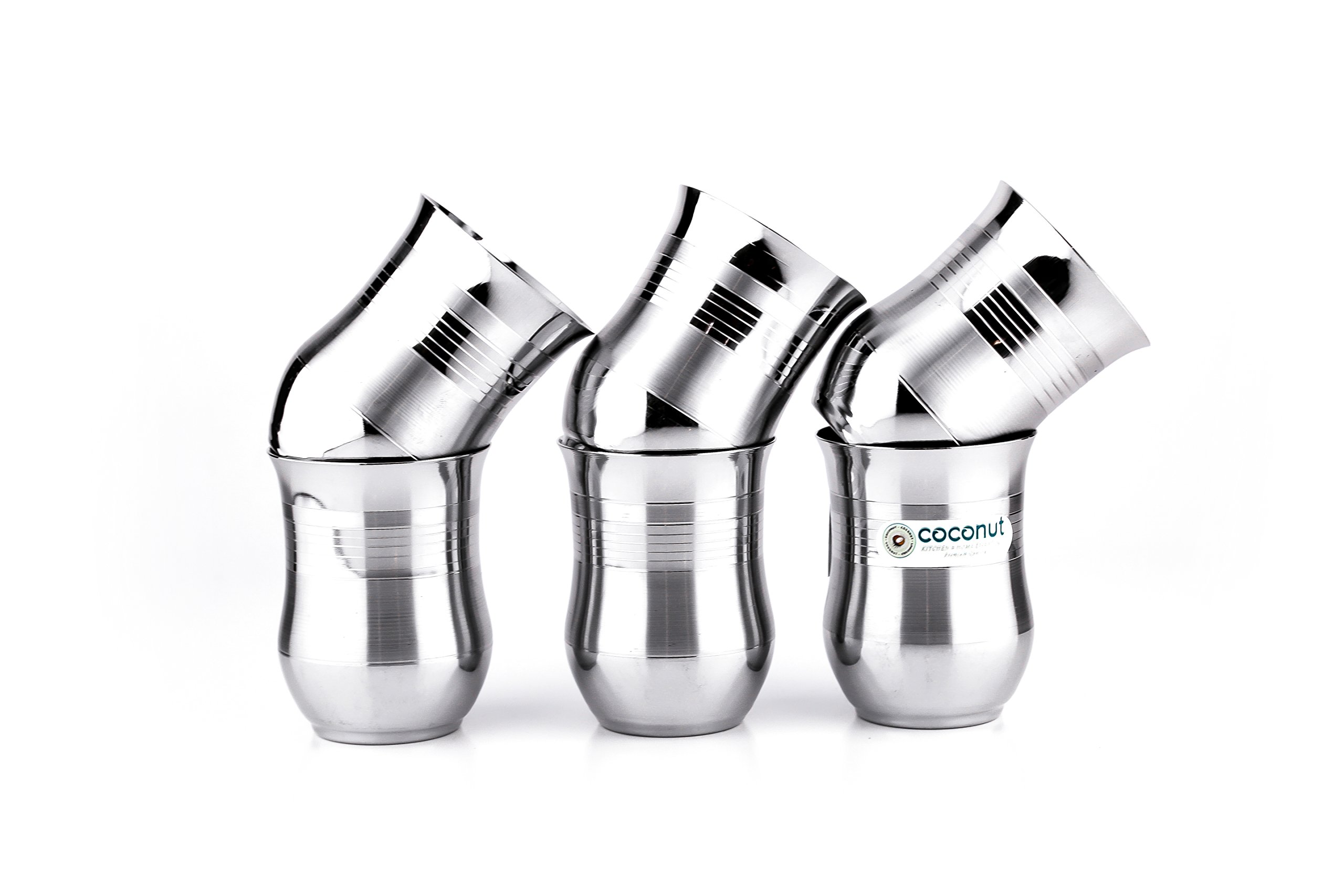coconut Stainless Steel - Glass | for Home, Office & Restaurant Drinkware Ideal for Serving Lassi, Chaas, Water, Juice & Lemonade Pack of 6 (Capacity-250ml Each)