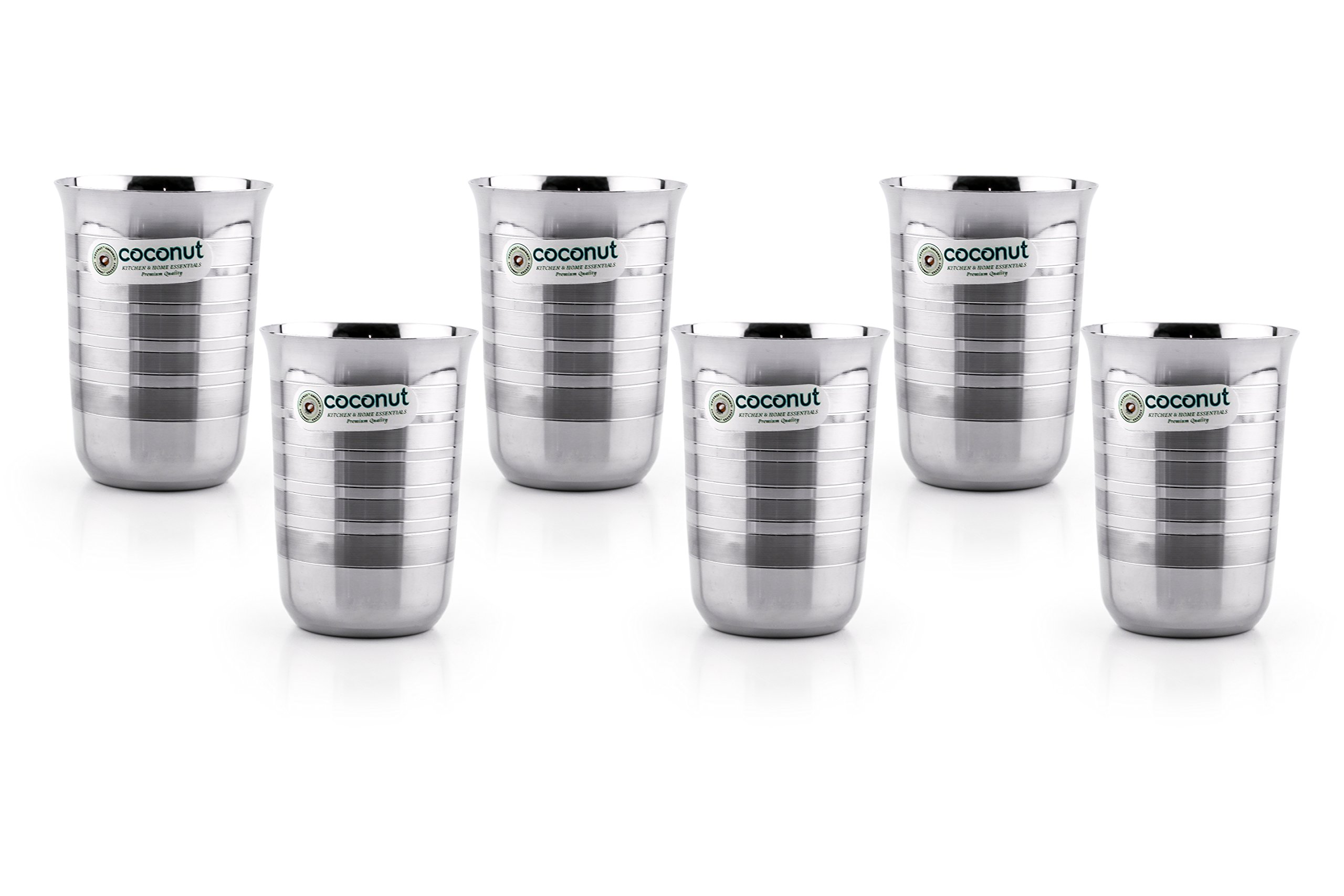 Coconut is range of innovative and quality products for home and kitchen. This set has been beautifully designed to add grace to your dining experience. This set is perfect for serving lemonade water juice etc. It is made from premium quality stainless steel and is absolutely durable. These glasses can be used at home as well as at hotels and restaurants. These can be easily cleaned and maintained.