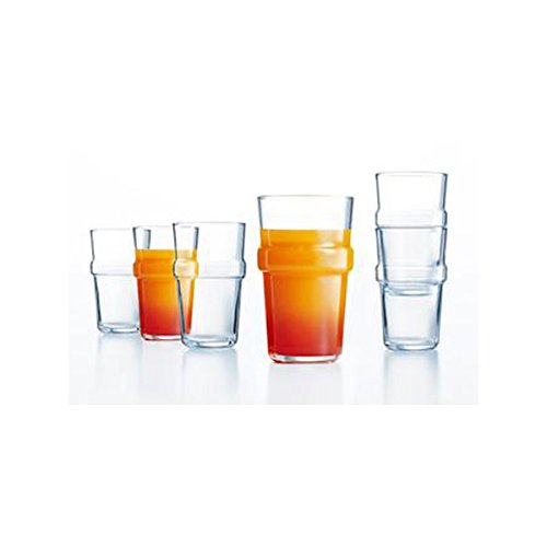 A high glass 320 ml Acrobat by Luminarc. Made of tempered glass which undergoes a specific thermal treatment to guarantee better quality and resistance to shocks and impacts. Glass is a non-porous material so it does not retain any microorganisms it is 100% hygienic. A stylish glass of Acrobat with a characteristic ring that will facilitate the stacking of glasses and ensure a more secure hold of the dish in your hand.. The glass of Acrobat is perfect for various table arrangements.