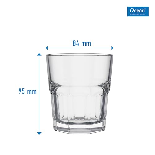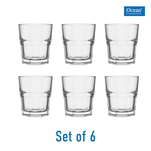 Ocean Centra Rock Glass Set (300 ml, 6 pcs) Clear | Stylish & Durable Glassware to Serve Water, Juice, Soft Drink & Iced Beverages | Used for Home Party, Offices & Restaurants | Dishwashar Safe