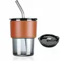 Glass Tumbler with Lid Straw and Protective Anti-Slip Leather Sleeve for Hot and Cold Beverages Tea Coffee Travel Mug Smoothies Fruit Juice. New stylish Glass Tumbler with lid glass straw and premium quality synthetic leather anti-slip sleeve for hot and cold beverages like coffeeteajuice smoothies and more. This mug tumbler is heat-resistant Glass made from superior quality glass.