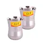 • Stainless Steel Curved Silver Touch Design Small Glass (150 Ml Each Silver)=Length-8 cm Width-6.5 cm Height-8 cm Debth-7.75 cm Weight-64 Gm Each Capacity-150 ml Each Diameter Of Top-6.5 cm Diameter Of Base-4.5 cm;Set Of 2
