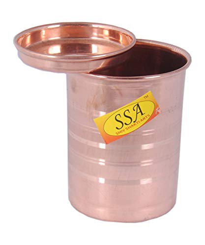 • Copper Plane Glass With Glass Lid Silver Tough Tumbler designs Color: Copper Material: Copper Weight: 103 Gram each Height: 9.5 cm Width/Diameter: 7 cm Capacity: 300 ML each Depth-9.25 cm::Set Of 6