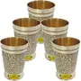 SHIV SHAKTI ARTS Handmade Set of 5 Pure Brass Embossed Glass Tumbler Volume - 300 ml