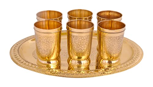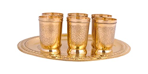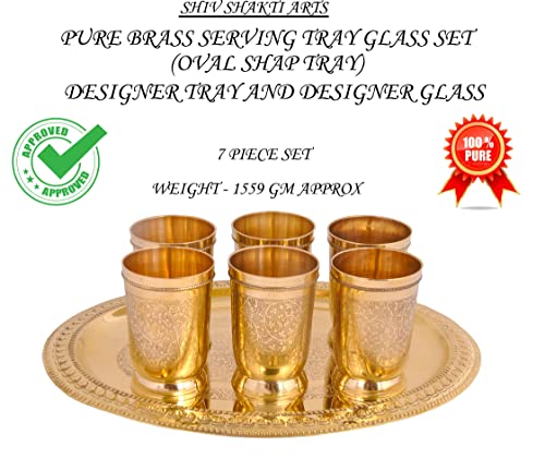 • Pure Brass 7 Pieces Serveware Set Included Components: 1 Brass Oval Tray 6 Brass Glasses