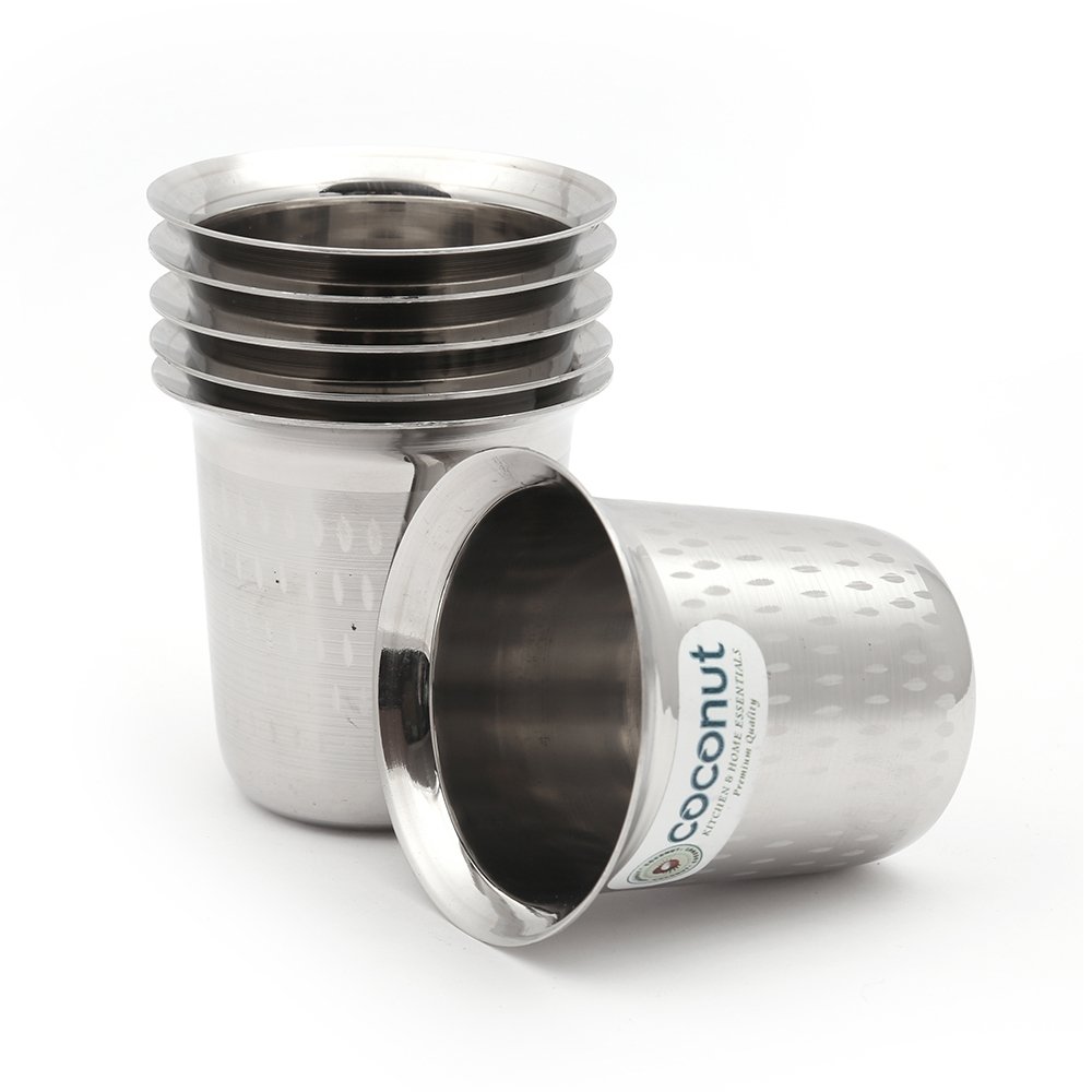 coconut Stainless Steel – Traditional South Indian Filter Ideal for Home & Office Use | for Serving Water | Milk | Tea | Coffee | Juice | Compact Drinkware for Daily Use | Pack of 6 | 100 ml Each