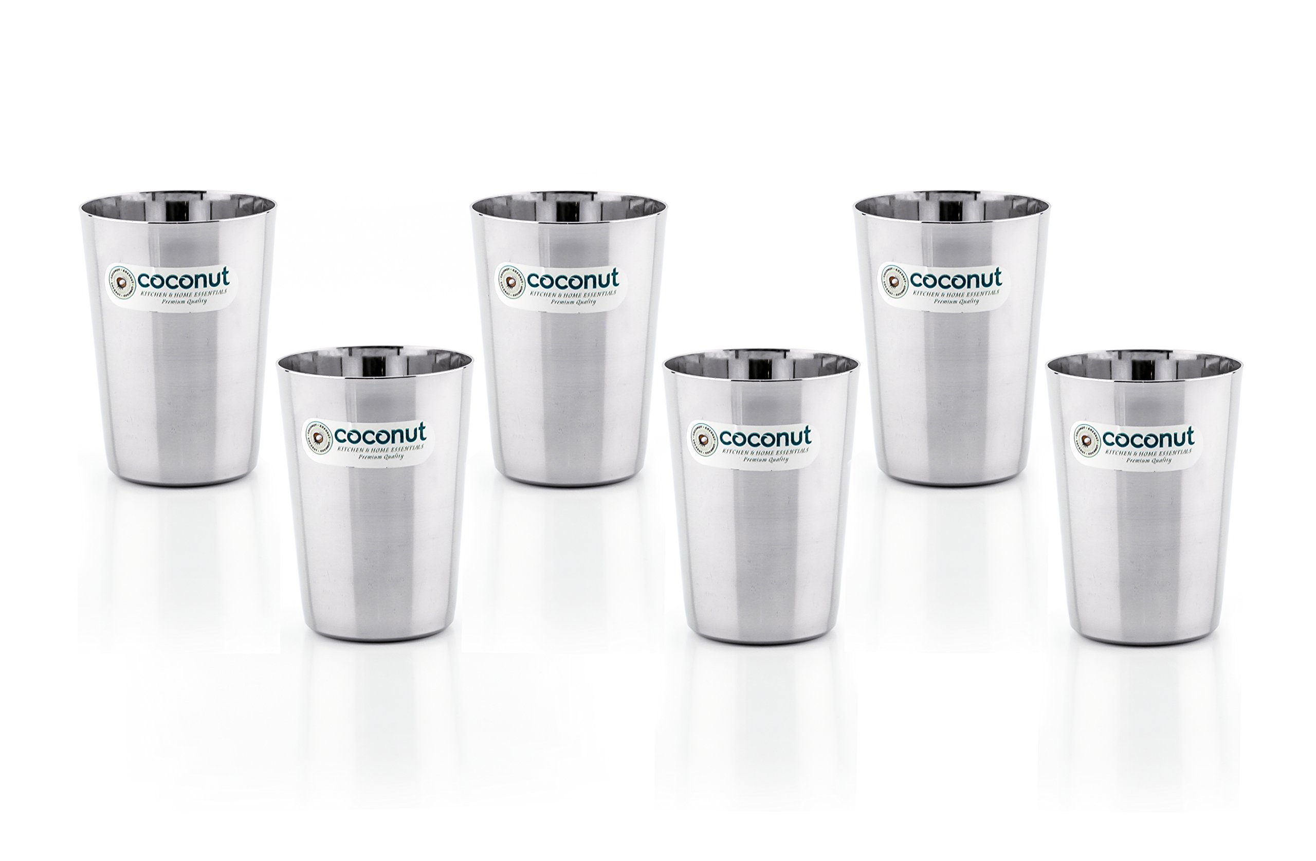 Coconut is range of innovative and quality products for home and kitchen. This set has been beautifully designed to add grace to your dining experience. This set is perfect for serving lemonade water juice etc. It is made from premium quality stainless steel and is absolutely durable. These glasses can be used at home as well as at hotels and restaurants. These can be easily cleaned and maintained.
