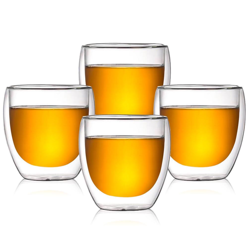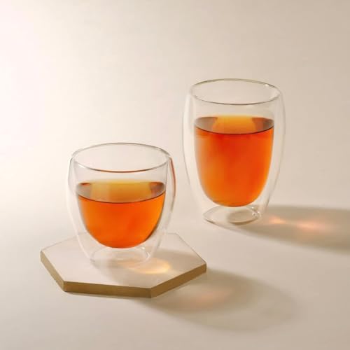 VAHDAM Double Walled Glass Tea Cup (250ml Capacity) Lead-Free Borosilicate Glass BPA Free | Double Walled Coffee Mug | Set of 4
