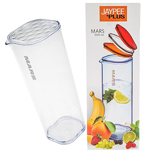 Mars- unbreakable jug made up of non-toxic food grade plastic ensure safe and healthy drinking. Perfect for serving and storing water lemonade juices squashes milk shakes and liquids. It can store liquid up to 1000ml you can put it in your fridge and serve chilled juices and squashes to your guests. It has a lid which ensures ease while serving. Material used is food grade (polycarbonate) BPA free. Stylish design- rectangular in shape with rounded corners and crystal cut design. Looks elegant and beautiful on dining table kitchen or on your office table. Non toxic food grade plastic. Light weight easy to handle. Available in attractive colours.