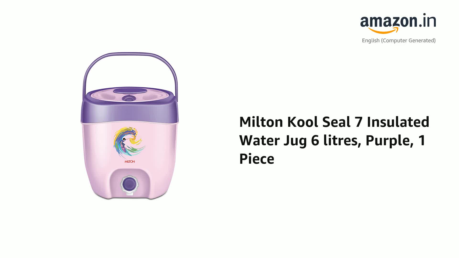 MILTON Plastic Kool Seal 7 Insulated Water Jug, 6 Litres, Purple | BPA Free | Food Grade | PU Insulated