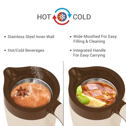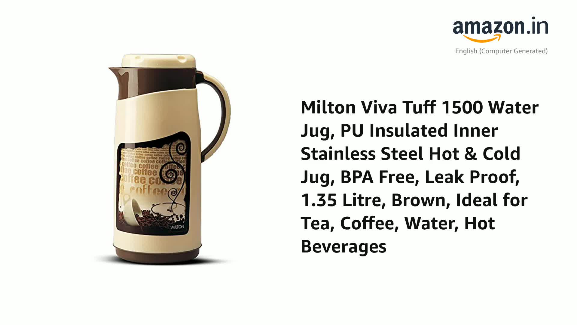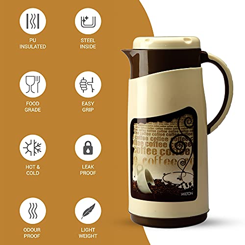 Sturdy stylish and convenient! The Milton Viva is the perfect jug to store and serve water as its vacuum-insulated steel interior which makes Viva Tuff Jug more durable. It's exterior is made from food grade plastic. Insulated with Milton TUFF PUF (Polyurethane foam) that helps in keeping liquid hot or cold for hours. It is tightly sealed from top to bottom making it more Hygienic. Serve your guest with this stylish jug. Enhance the look of your dining table with its exclusive shape and design. It is BPA free Leak proof odour proof and light weight. The perfect serving jug for any special occasions or household like birthday or anniversary parties holiday picnic. It has integrated handle for easy carrying. Leave the lid open for some time before pouring any liquid into it. Pre-condition Jug with hot water if using for HOT beverage and cold water if using for COLD. Fill the Jug upto the brim this ensures maximum heat retention. Ideal for serving water tea coffee water hot beverages juices shakes and soup.