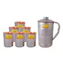 Shiv Shakti Arts® Silver Touch Luxury Design Steel Copper Jug Glass Set - 7 Pieces Drinkware Set - (Capacity -1.5 Liter)