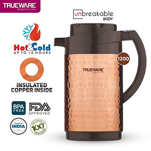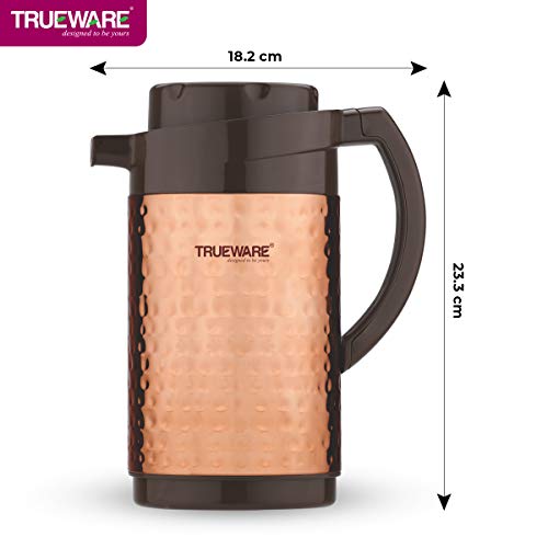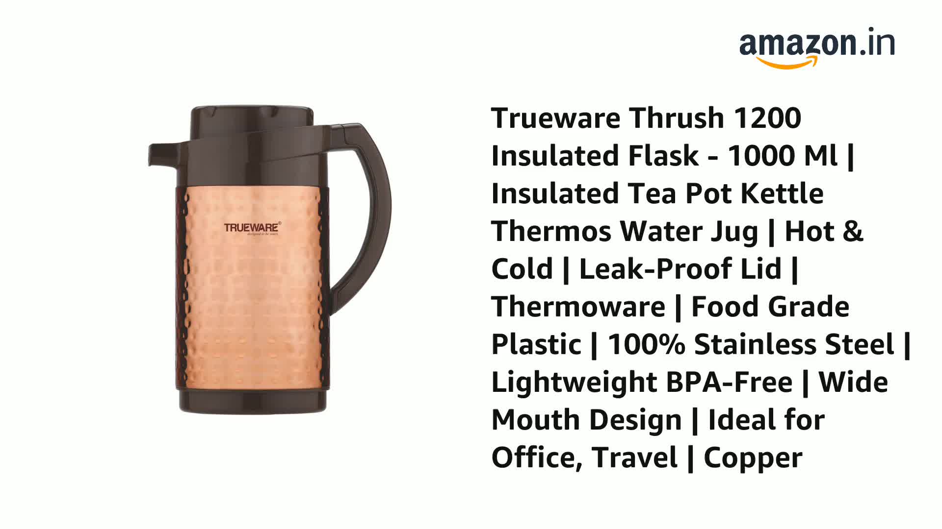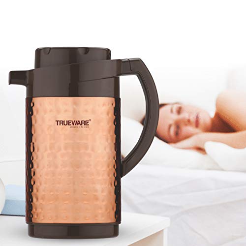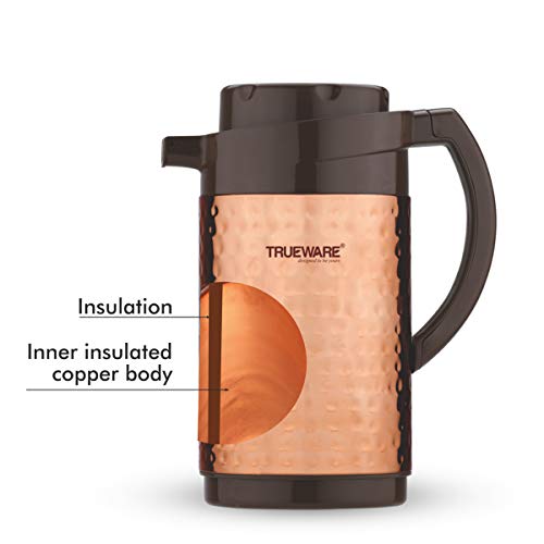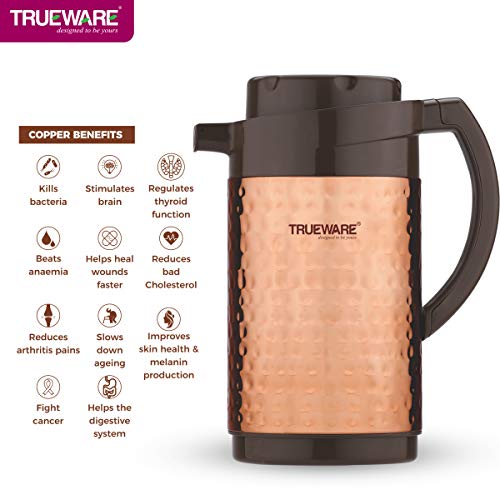 Water is the most essential element to sustain life on this planet. 70 per cent of human body is made up of water. You may have not known this but in ancient times our ancestors and even our grandmothers followed the practice of storing water in containers made of copper. It can kill all the micro organisms molds fungi algae and bacteria present in the water that could be harmful to the body and make the water perfectly fit for drinking. In addition water stored in a copper vessel preferably overnight or at least for four hours acquires a certain quality from the copper. Copper is an essential trace mineral that is vital to human health. It has antimicrobial antioxidant anti-carcinogenic and anti-inflammatory properties. It also helps neutralize toxins. Drinking 2 to 3 glasses of water that has been stored in a copper vessel is another easy way to supply your body with enough copper. Trueware Thrush Insulated copper jug is designed to keep water for long hours. The Thrush insulated copper body inside and outside hammered copper finish make it an elegant flask . It's lid has more number of threads and is deep threaded. THRUSH FLASK’S ROUGH –TOUGH FACTORS Thrush insulated copper flask is ‘Rough – Tough’ as its name given. All over sealed body no point of any leakage or dripping while travelling or so…Smooth finished handle to grip it. It has inner insulated copper body which makes it unbreakable. GET THE BEST OUT OF IT Before Pouring your favorite liquids inside keep the flask’s cap open for few minutes then fill it. It can keep ice-cold all day long. Fill the flask upto the brim only for maximum heat retention. Extra/Over filling may cause damage to the inner insulated walls.