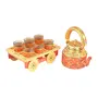 CHURU SILVERWARE Aureate Kettle Set V with 6 Glasses & Holder Handicraft Decorative Tea Coffee Set