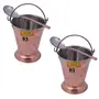 SHIV SHAKTI ARTS Handmade Set of 2 Traditional Steel Copper Bucket/Copper Balti Volume 700 ML Each with 2 Serving Spoons
