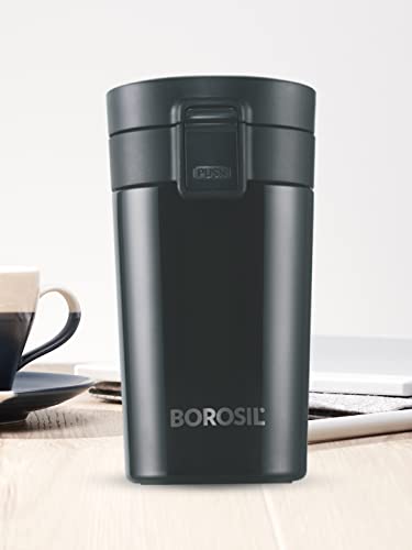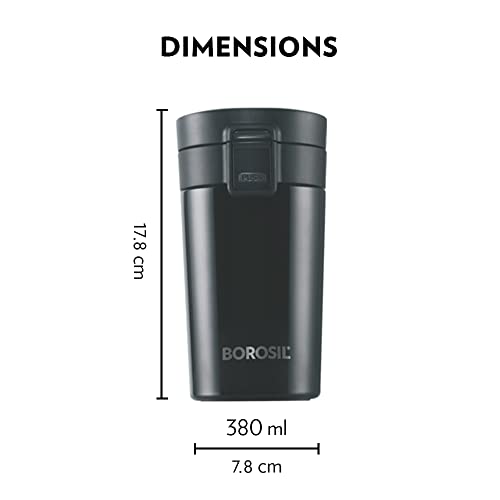 Borosil Hydra Coffeemate 380 ml Stainless Steel Travel Mug | Double Wall Vacuum Insulated, Black | 8 Hrs Hot & 14 Hours Cold | Ideal for Personal & Corporate Gifting