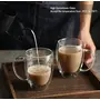 DOUBLE WALLED DESIGN DOUBLE FUN - Due to the double wall thermal insulated design demitasse cups aren't hot to the touch after making the espresso but the liquid inside of them is still keeping warm. So amazing! And the lines are smooth curving nicely alm