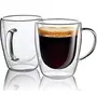 Double Walled Glass Coffee Mugs with Handle,350ml Insulated Coffee Cups,Clear Borosilicate Glass Mugs,Perfect for Cappuccino,Tea,Latte,Hot Beverage (Pack of 4)