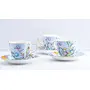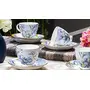 Floral Cups & Saucer Set for Coffee/Tea/Hot Drinks - Set of 12 pcs (Blue Floral),Bone China, 200 Milliliter