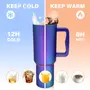 HomeKitchenServeware setsMugHouse of Quirk 1200ML Stainless Steel Tumbler Hot and Cold with Handle and Lid 2 Straw Double Insulated Cup Leak Proof Mug Cupholder for Gym Travelling (Aurora Prism)