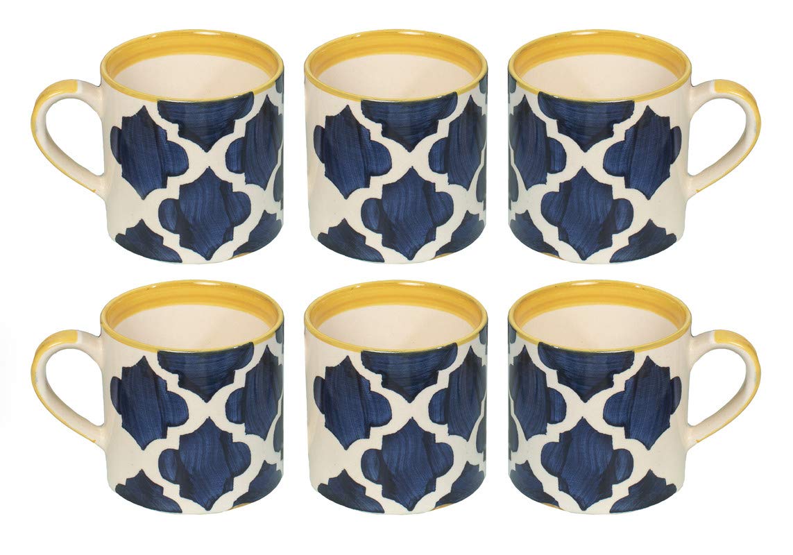 KHURJA POTTERY Ceramic Coffee Mug - 6 Pieces Blue 190 ml