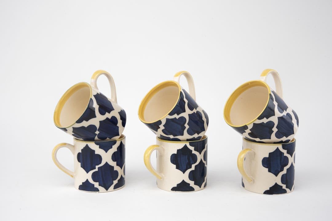 Beautiful mugs, ideal size for a cup of chai. Good weight and nice bright colours. The product is great but Silkrute's courier service handled it badly and I received the set of 6 mugs with one mug's handle broken. Was able to request a refund though.