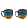 KHURJA POTTERY Ceramic Coffee Tea Milk Cappuccino Mugs 250ml Microwave Dishwasher SafeSet of 2Yellow and Blue