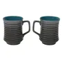 KHURJA POTTERY Ceramic Coffee Tea Milk Cappuccino Mugs 300ml Microwave Dishwasher Safe Set of 2 Grey and Teal Blue