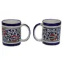KHURJA POTTERY Ceramic Coffee Tea Milk Mugs 250ml Microwave Dishwasher Safe Mughal Hand Painting Set of 2 Multi Color