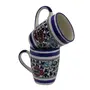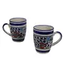 KHURJA POTTERY Ceramic Coffee Tea Milk Mugs 250ml Microwave Dishwasher Safe Mughal Hand Painting Set of 2 Multicolor