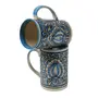 KHURJA POTTERY Ceramic Coffee Tea Milk Mugs 250ml Microwave Dishwasher Safe Mughal Hand Painting Set of 2 Sky BlueCylindrical Shape