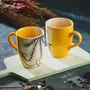 KHURJA POTTERY Ceramic Hand Painted Large Tea/Coffee Mugs Yellow Set of 2