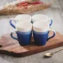 KHURJA POTTERY Ceramic Hand Painted Sea Blue Large Tea/Coffee Mugs Blue Set of 2