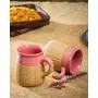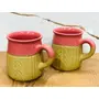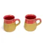 KHURJA POTTERY Ceramic Handcarved Dual Glazed Studio Pottery Pink & Yellow Tea/Coffee Mug Set of 2 (260 ML Microwave & Dishwasher Safe)