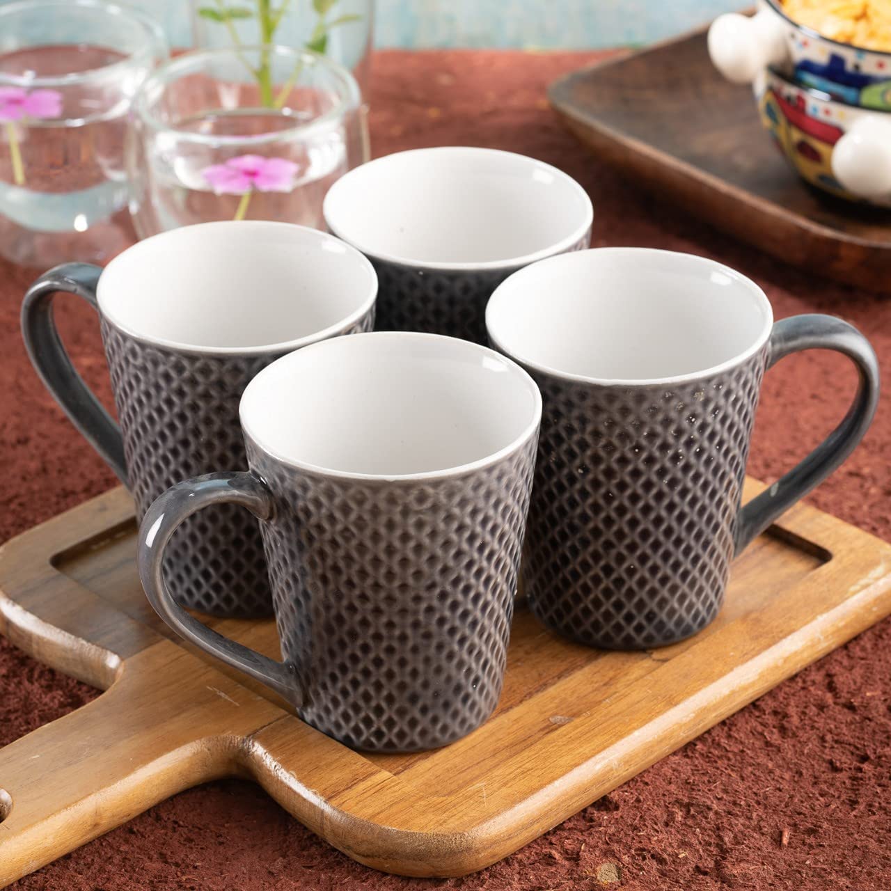 KHURJA POTTERY Ceramic Handcrafted Dual Glazed Studio Pottery Tea/Coffee Mug Set of 4 (300 ML Microwave & Dishwasher Safe)