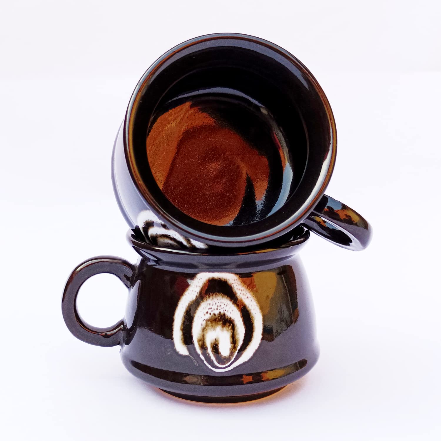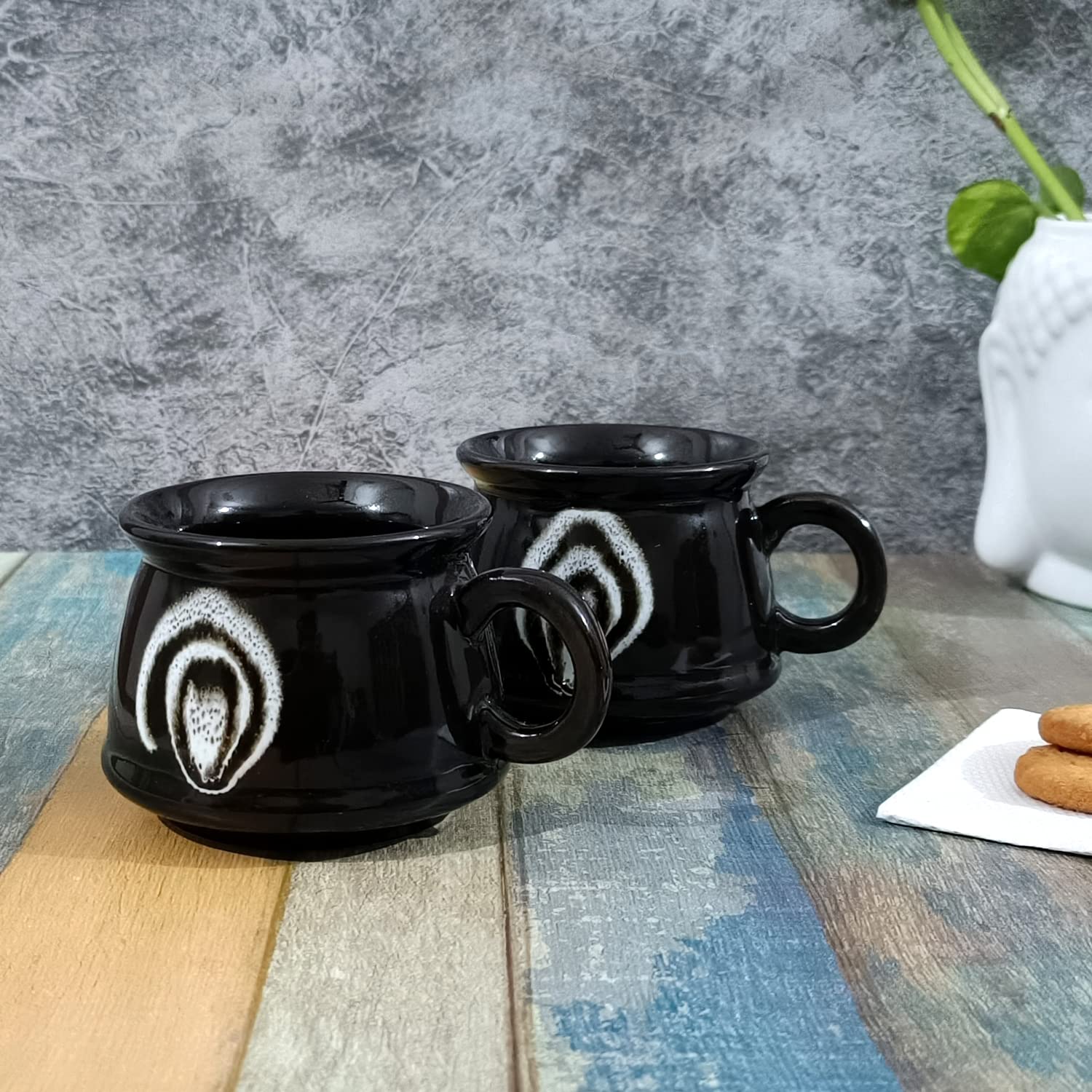 Made in India for an initiative of Aatam Nirbhar Bharat A Product with simple handle and detailed with Handpainted Glaze. Handmade and hand glazed with love from the interiors of India. We make the perfect addition to any kitchen and table spaces as art pieces displaying an exemplary glimpse of studio pottery from India. Those who love their food love their kitchen will definitely love this modern product. Best for serving casually or occasionally both at time. Tip to bottom is 100% handmade with fine details. An ideal gift for housewarming party. Comes in a set of 2. The product is lead free. The product is dishwasher & microwave safe.