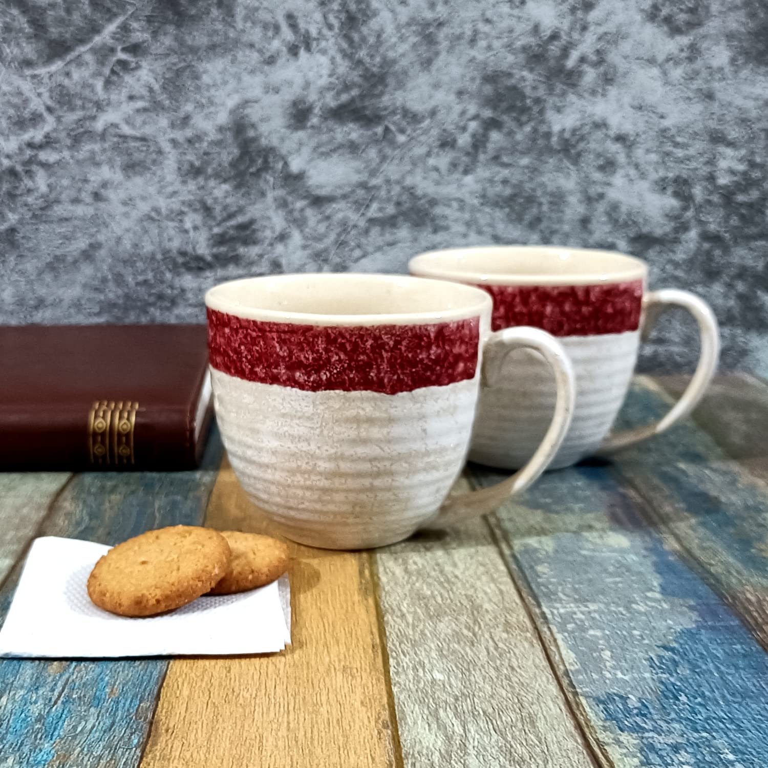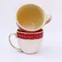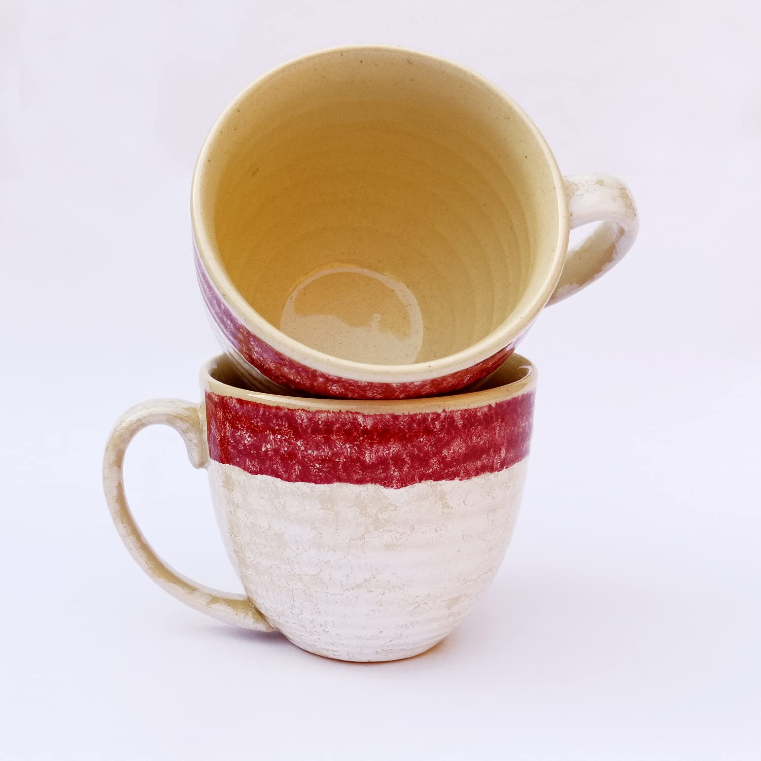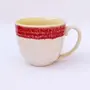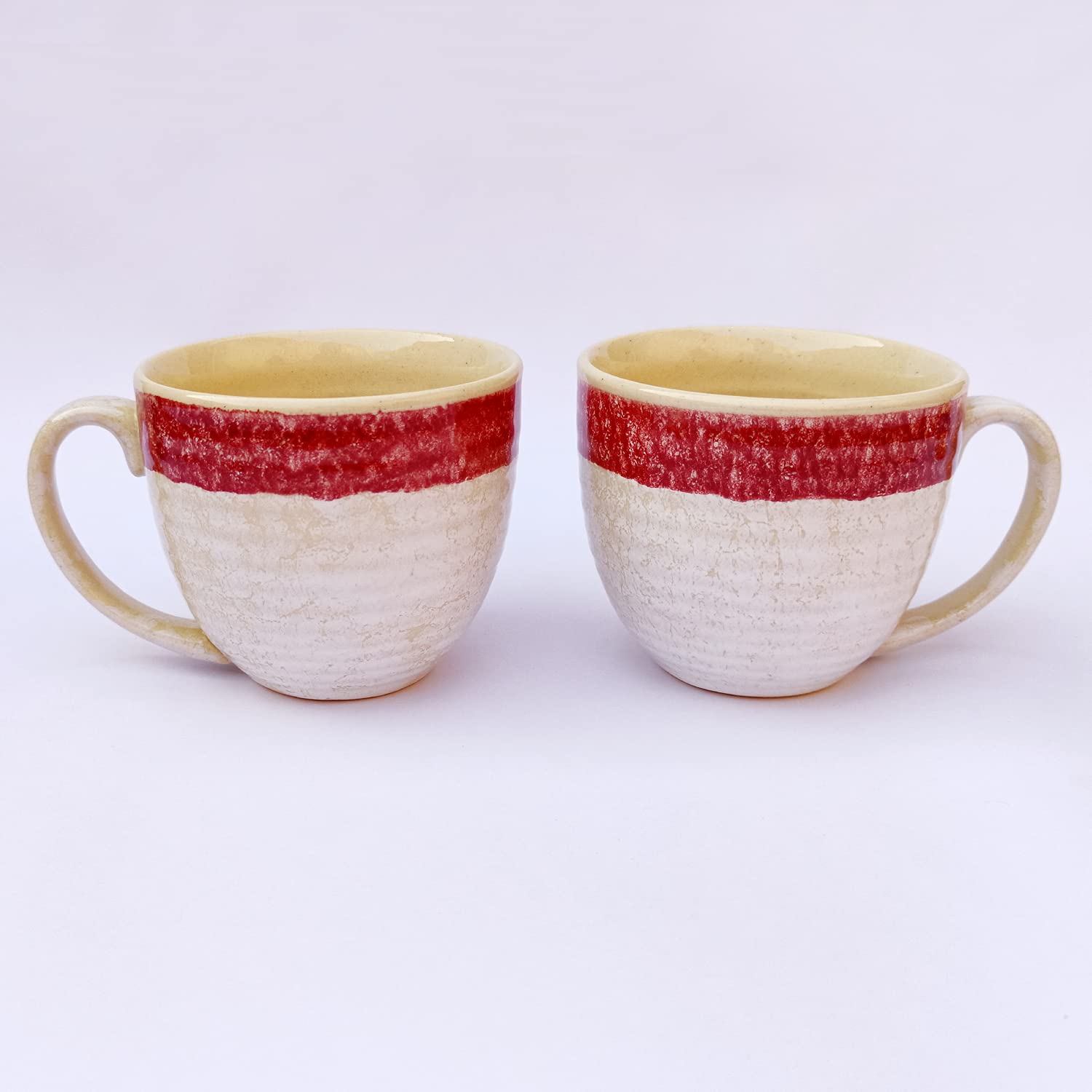 KHURJA POTTERY Coffee Soup Tea Mugs Cups Set of 2 Without Spoons Studio Pottery Ceramic (Cream - Red 300 ml Each) | Tea | Hand Glazed | Special Rare Edition | Perfect for Gifting