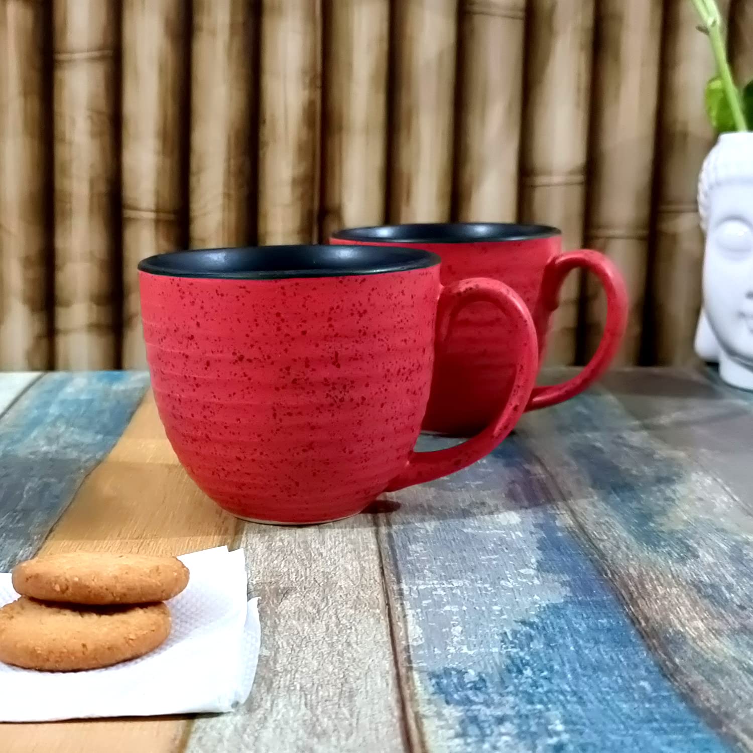 Made in India for an initiative of Aatam Nirbhar Bharat A Product with simple handle and detailed with Handpainted Glaze. Handmade and hand glazed with love from the interiors of India. We make the perfect addition to any kitchen and table spaces as art pieces displaying an exemplary glimpse of studio pottery from India. Those who love their food love their kitchen will definitely love this modern product. Best for serving casually or occasionally both at time. Tip to bottom is 100% handmade with fine details. An ideal gift for housewarming party. Comes in a set of 2. The product is lead free. The product is dishwasher & microwave safe.