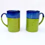 KHURJA POTTERY Coffee Tea Milk Mugs Cups Set of 2 Studio Pottery Ceramic (Blue - Green Dual Tone 300 ml Each) | Tea | Hand Glazed | Special Rare Edition | Perfect for Gifting