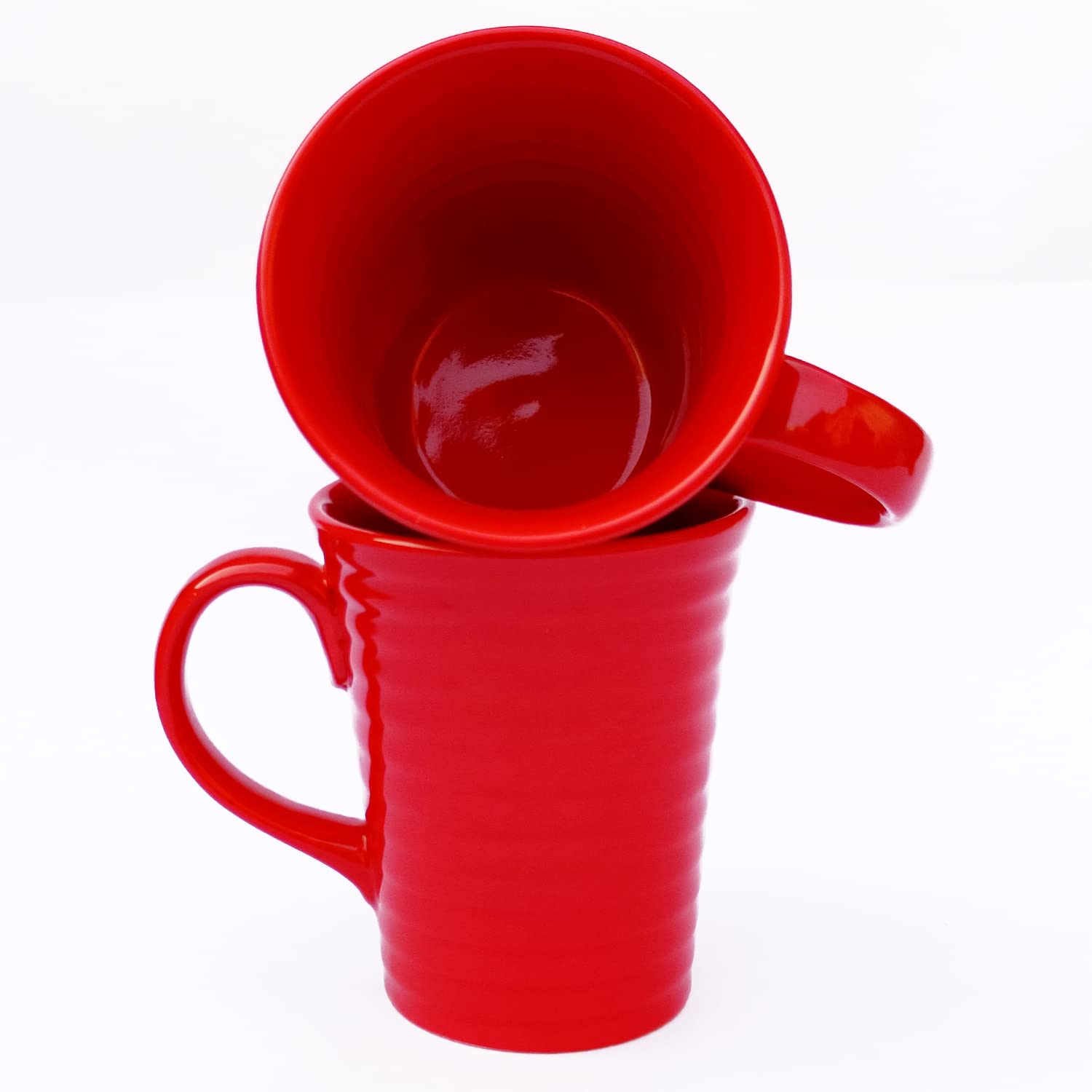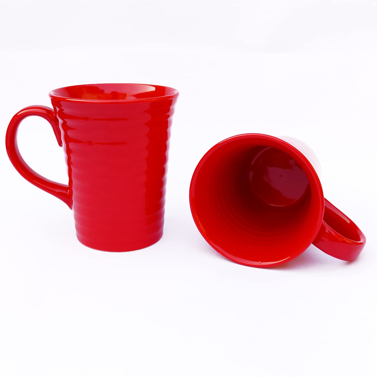 KHURJA POTTERY Coffee Tea Milk Mugs Cups Set of 2 Studio Pottery Ceramic (Red 300 ml Each) | Tea | Hand Glazed | Perfect for Gifting