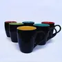 KHURJA POTTERY Coffee Tea Mugs Cups Set of 6 Studio Pottery Ceramic (Black Inner Multicolor - 300 ml Each Microwave & Dishwasher Safe) | Tea | Hand Glazed & Handmade | Perfect for Gifting
