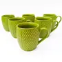 KHURJA POTTERY Coffee Tea Mugs Cups Set of 6 Studio Pottery Ceramic (Parrot Green 250 ml Each Microwave & Dishwasher Safe) | Hand Glazed & Handmade | Special Rare Edition | Perfect for Gifting