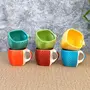 KHURJA POTTERY Coffee Tea Mugs Cups Set of 6 Studio Pottery Ceramic (Square Multicolor - 125 ml Each Microwave & Dishwasher Safe) | Tea | Hand Glazed & Handmade | Perfect for Gifting