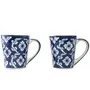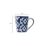 KHURJA POTTERY Hand Painted Flower Pattern Ceramic Large Coffee Mug - 2 Pieces (Blue) 350 Ml
